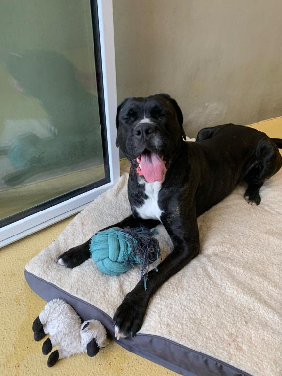Balu ist ein 4-jähriger, unkastrierter, Cane Corso Rüde. Er kennt Kinder und Katzen und ist mit Hündinnen gut verträglich. Bei Rüden entscheidet die Sympathie. Charakterlich ist Balu allen Menschen gegenüber sehr offen, verschmust und verspielt. Oft unterschätzt er aber seine Körpermaße und springt seine Menschen gerne noch an. Gewissen Grundgehorsam besitzt Balu, Probleme macht aber die Leinenführigkeit und Orientierung am Besitzer wenn man mit ihm draußen unterwegs ist, daran muss mit ihm im neuen Zuhause gearbeitet werden. Balu hat ein negativ Zeugnis und hat mit seiner bisherigen Besitzerin auch einen Wesenstest erfolgreich abgelegt.