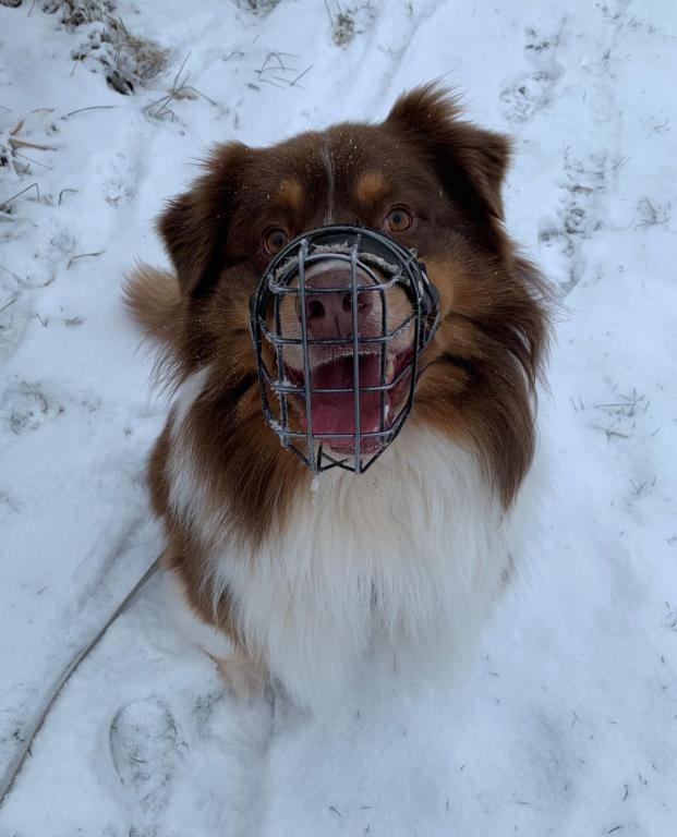 Brisco ist ein 2019 geborener, unkastrierter Australian Sheperd Rüde. Er kam zu uns weil seine Halterin überfordert war. Brisco´s Baustellen liegen hauptsächlich beim Kontakt mit fremden Menschen, hier reagiert er extrem unsicher, bellt, zieht sich zurück und würde, wenn man ihn zu sehr bedrängt, auch mal schnappen. Einen Beißvorfall gab es noch nie, aber soweit möchte es natürlich niemand kommen lassen. Bei uns war Brisco die ersten Tage durch einen gut sitzenden und genügend großen Maulkorb abgesichert, bis er langsam zu uns Fremden vertrauen fasste. Er geht gerne spazieren und besitzt Grundgehorsam. Veträglich ist er nach Sympathie, lief bei uns schon mit Rüden und Hündinnen. Wir wünschen uns für ihn ein ruhiges, ländliches Zuhause bei hundeerfahrenen Menschen, die ihm genügend Zeit geben zu vertrauen und dann genügend Sicherheit ausstrahlen um an seinen Baustellen zu arbeiten. Kleine Kinder sollten nicht im zukünftigen Zuhause sein.