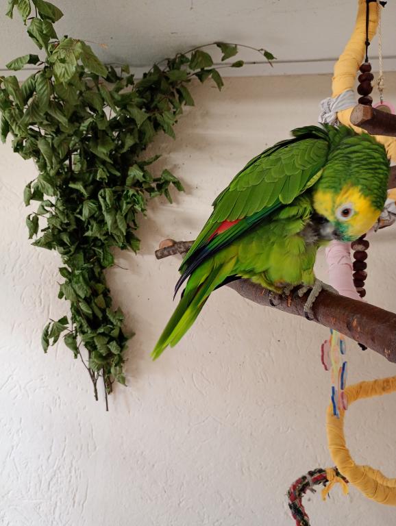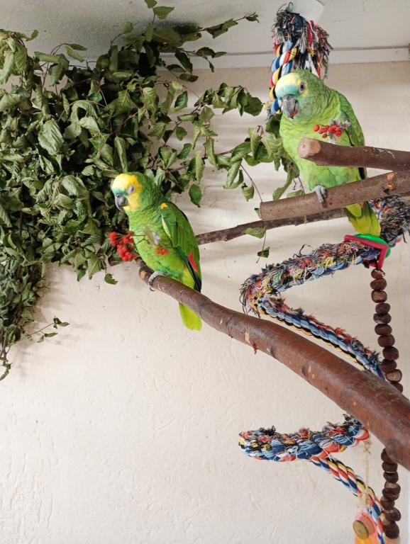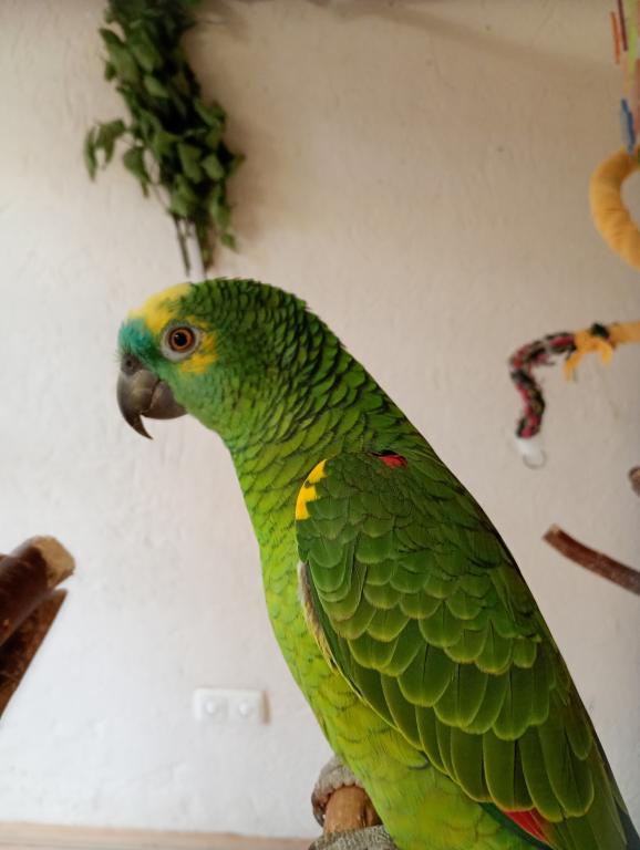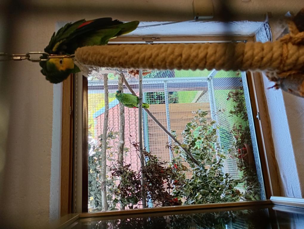 Hallo, wir sind ein Blaustirnamazonen-Pärchen , Papa Cora und Mama Sandy. Wir suchen ein neues Zuhause. Im Moment haben ein Zimmer mit einer großen Zimmer-Voliere, durch das Fenster können wir in eine Außenvoliere reinfliegen.
