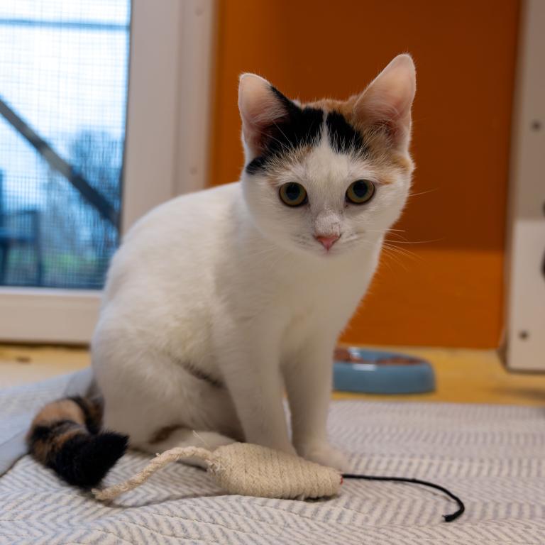 Haily ist eine bezaubernde Tricolor-Katze, voller Energie und Lebensfreude. Unsere junge Wirbelwind-Dame steht in den Startlöchern für ein aufregendes Katzenleben – ideal ist also ein Zuhause mit gleichaltriger Freundin oder Freund, damit sie gemeinsam toben und die Welt entdecken können. Eine Wohnung mit Balkon wäre perfekt, damit Haily sicher die frische Luft genießen kann.