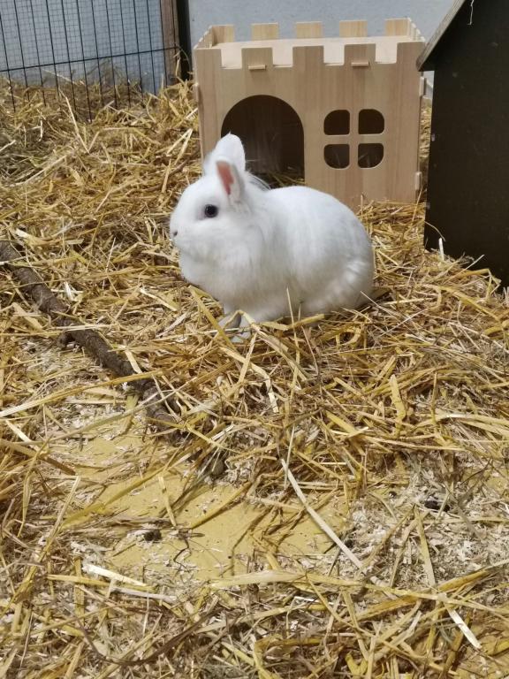 Schneeflocke ist sanft, zutraulich und liebt es, neue Dinge zu entdecken. Sie frisst alles, was man ihr anbietet, und genießt viel Bewegungsfreiheit im Außenbereich. Auch kalte Tage machen ihr nichts aus, solange sie ihre Artgenossen um sich hat und genügend Platz zum Hoppeln findet.