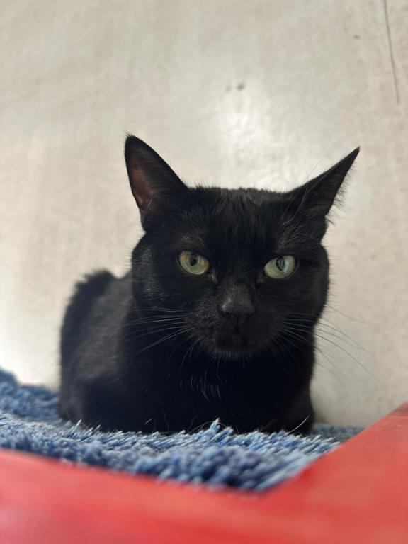 Schwarzi ist eine junge Katzendame, geboren etwa 2023, die bisher in reiner Wohnungshaltung lebte. Sie wurde gemeinsam mit einer Partnerkatze bei uns abgegeben, allerdings verstanden sich die beiden zuletzt nicht mehr.