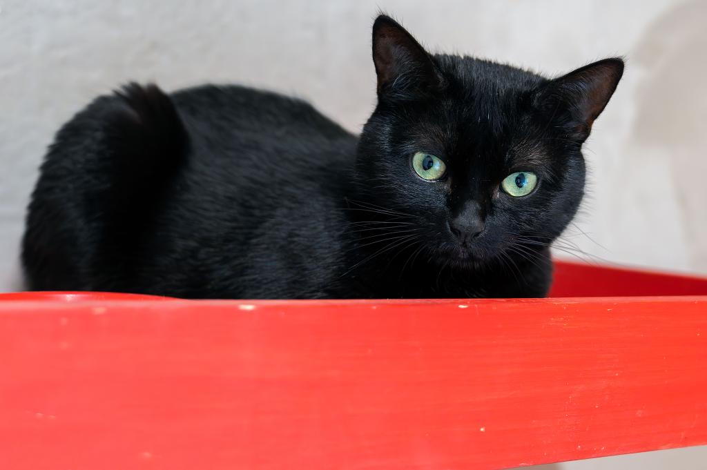 Schwarzi ist eine junge Katzendame, geboren etwa 2023, die bisher in reiner Wohnungshaltung lebte. Sie wurde gemeinsam mit einer Partnerkatze bei uns abgegeben, allerdings verstanden sich die beiden zuletzt nicht mehr.