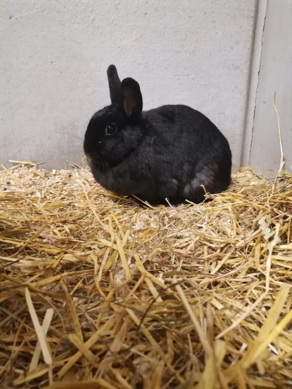 Schwarzi ist eine aufgeweckte und zutrauliche Kaninchendame, die jede Art von Futter liebt. Sie genießt es, draußen zu hoppeln und ist auch in der kalten Jahreszeit eine wahre Winterliebhaberin. Schwarzi freut sich besonders über viel Platz zum Erkunden und schätzt die Gesellschaft anderer Kaninchen sehr.