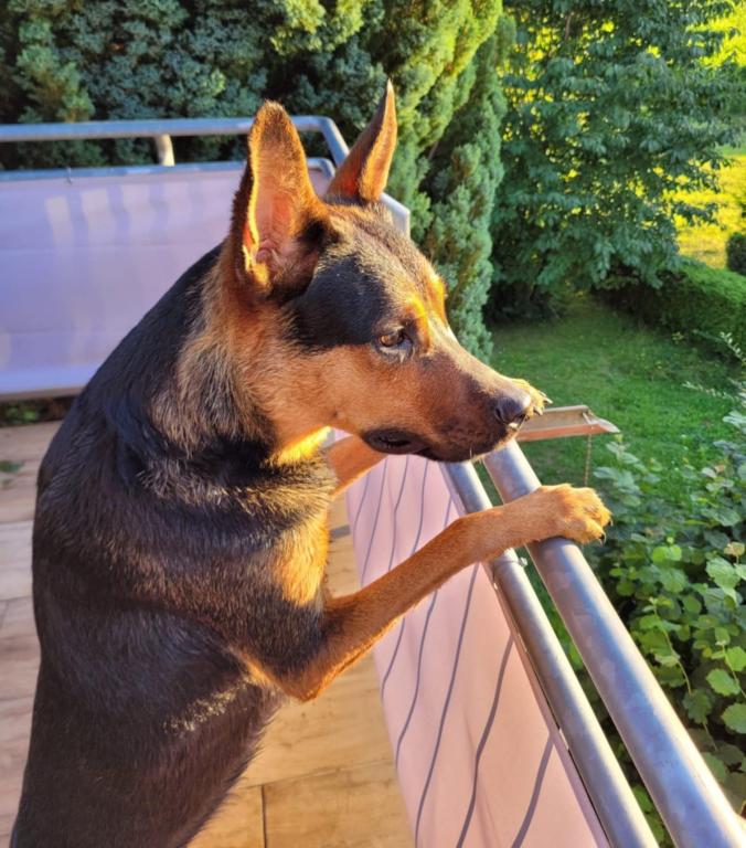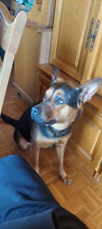 Shila ist eine sehr energische und aktive Hündin. Sie könnte stundenlang im Freien Laufen und alles, was sie dafür braucht, ist nur ein Ast. Sie freut sich sehr, Menschen zu sehen solang sie sich im Bereich des Hauses befinden, jedoch jeden den sie nicht kennt – auf der anderen Seite vom Zaun/Fenster bellt sie an. Leider trotz ihrem Spaß an Spazieren, hat sie Probleme braven Gassi gehen an der Leine. Sie ist verschmust, jedoch unterschätzt sie ihre Größe und springt Meschen an. Von einer meiner Arbeitskolleginnen, die mit der vorherigen Besitzerin befreundet ist, haben wir erfahren, dass der Partner der Besitzerin sie missbraucht hat und in einem Zimmer eingesperrt, deswegen hat sie Probleme mit vertrauen an Männern und hat angst vor großen, langen Gegenständen, wie Besen.