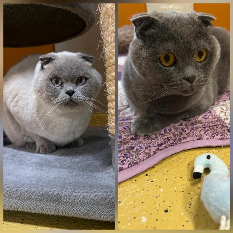 Die beiden hübschen Scottish-Fold-Kater Simba (grau) und Dima (grau-weiß) mussten wegen Umzug und Krankheit schweren Herzens abgegeben werden. Sie sind von klein auf zusammen und werden daher nur im Doppelpack vermittelt.