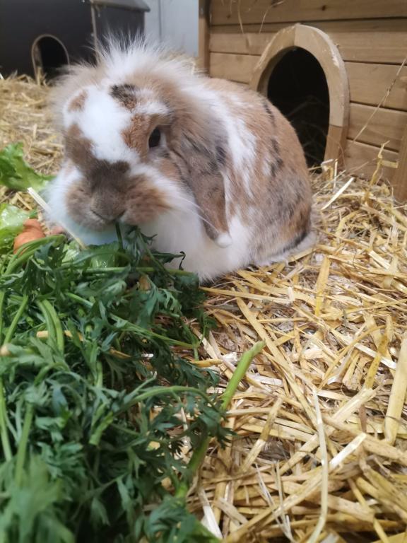 Tom ist neugierig, freundlich und sehr kontaktfreudig. Er ist ein unkompliziertes Kaninchen, das sowohl Streicheleinheiten als auch abwechslungsreiches Futter liebt. Tom fühlt sich im Winter draußen wohl, solange er ausreichend Platz und Gesellschaft hat, und ist ein aktiver Hüpfer, der gerne tobt.