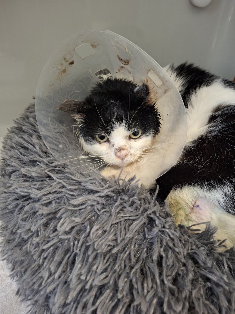 Kater wurde in Schaufling mitten auf der Straße gefunden, hat einen verletzten Oberschenkel, unkastriert und nicht gechippt, wurde beim TA abgegeben und befindet sich jetzt im Tierheim.